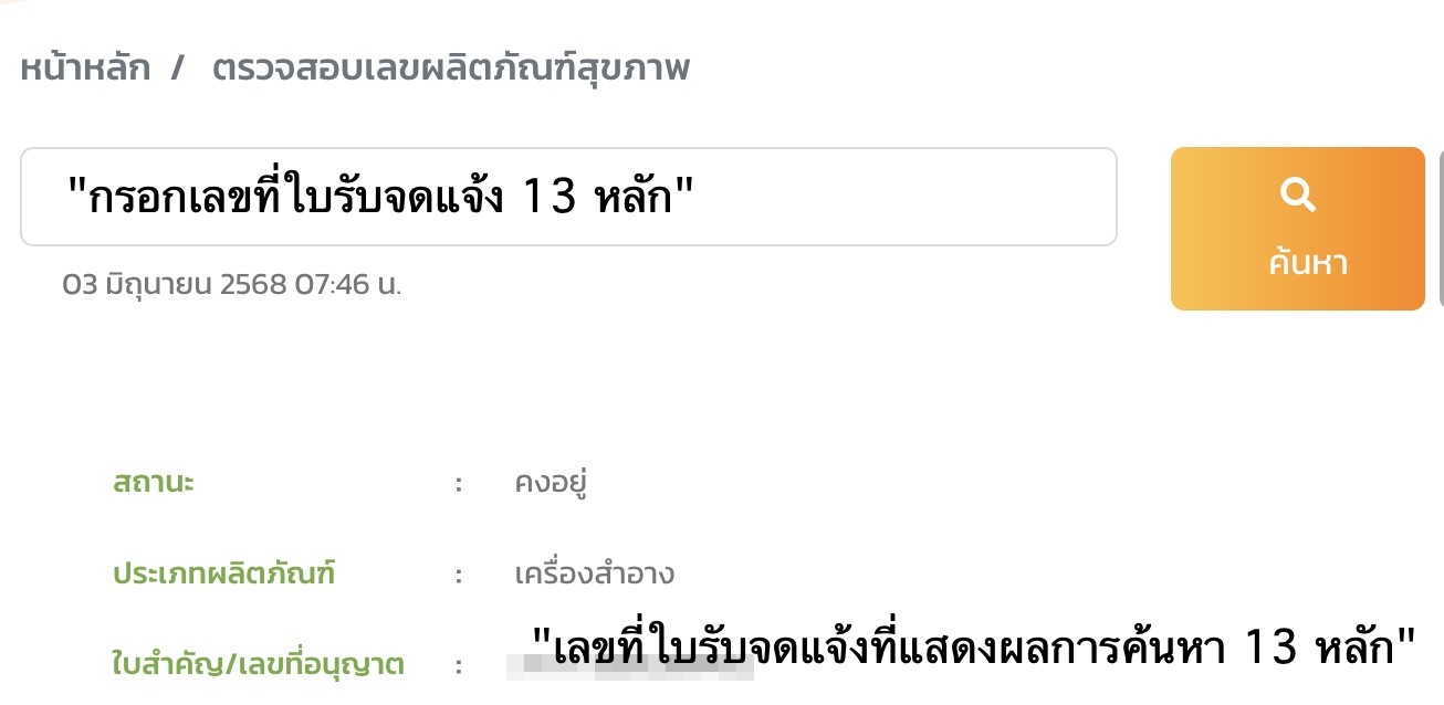 วิธีเบื้องต้นในการตรวจสอบเลขที่ใบรับจดแจ้ง หรือ ผลิตภัณฑ์ที่เราใช้อยู่นั้น มีวิธีการตรวจสอบดังนี้....